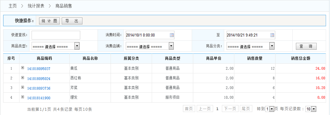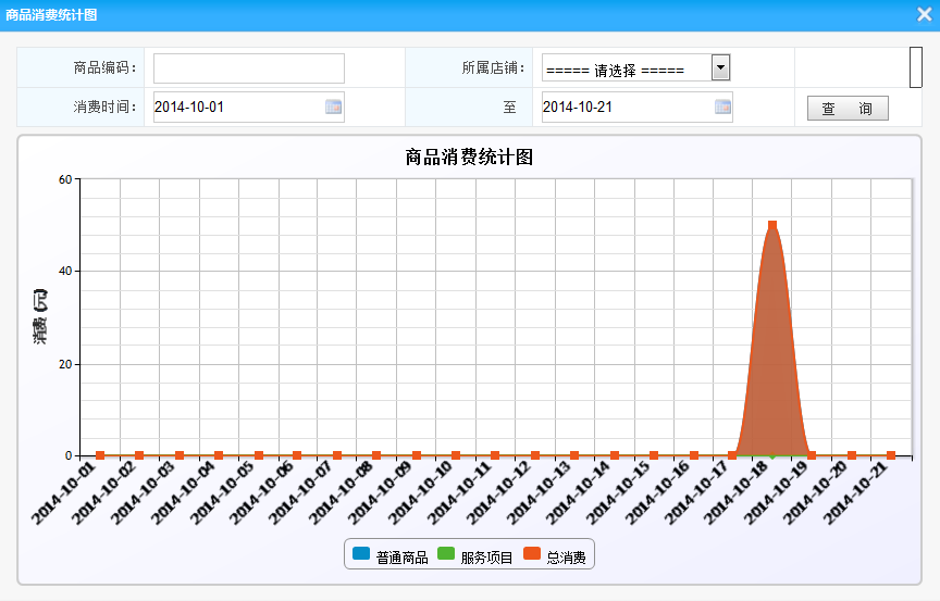 4.列表:雙擊商品編碼可以查詢商品消費詳情