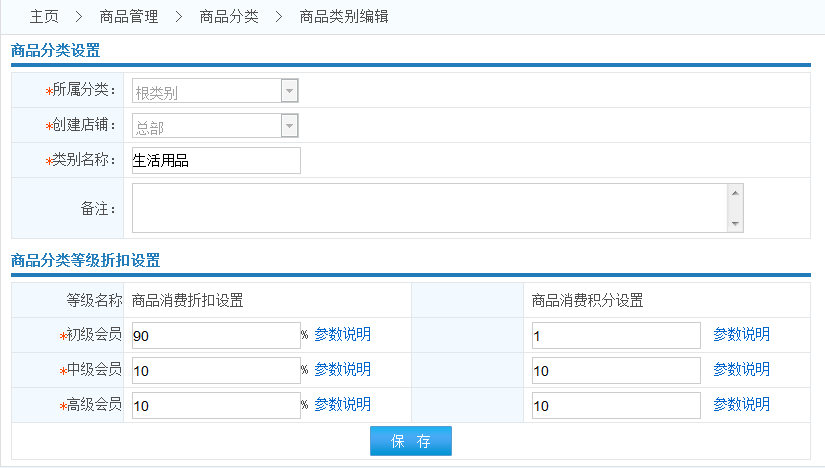 說明:商品分類等級折扣設(shè)置 這一欄會展示出系統(tǒng)中的所有的會員等級